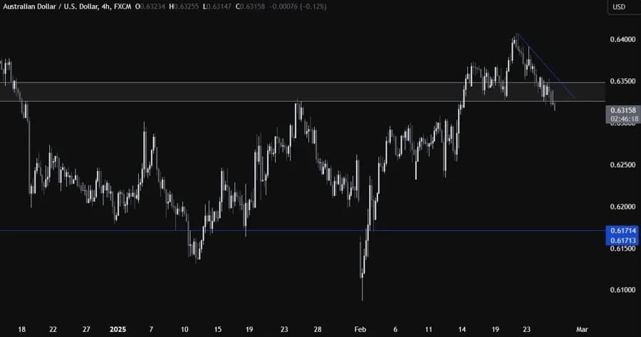 این موضوع با توجه به گزارشهای NFP و CPI آینده که قبل از تصمیم FOMC در ماه مارس منتشر میشوند، جایی که ما همچنین بهروزرسانی SEP و Dot Plot را دریافت خواهیم کرد، قابل توجه است. از طرف AUD، بانک مرکزی استرالیا اخیراً نرخ بهره را طبق انتظار ۲۵ واحد پایه کاهش داد و نرخ نقدی را به ۴.۱۰٪ رساند، اما این تصمیم با راهنماییهای بیشتر از حد انتظار همراه بود. پس از تصمیم نرخ بهره، ما شاهد گزارش قوی اشتغال استرالیا بودیم و امروز شاخص CPI میانگین تعدیلشده ماهانه به ۲.۸٪ افزایش یافت و نزدیک به بالاترین حد محدوده هدف ۲-۳٪ باقی ماند.