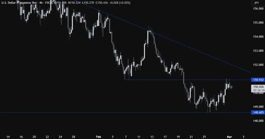 افزایش USDJPY در بحبوحه ترس از تعرفهها و جریانهای ریسکگریز