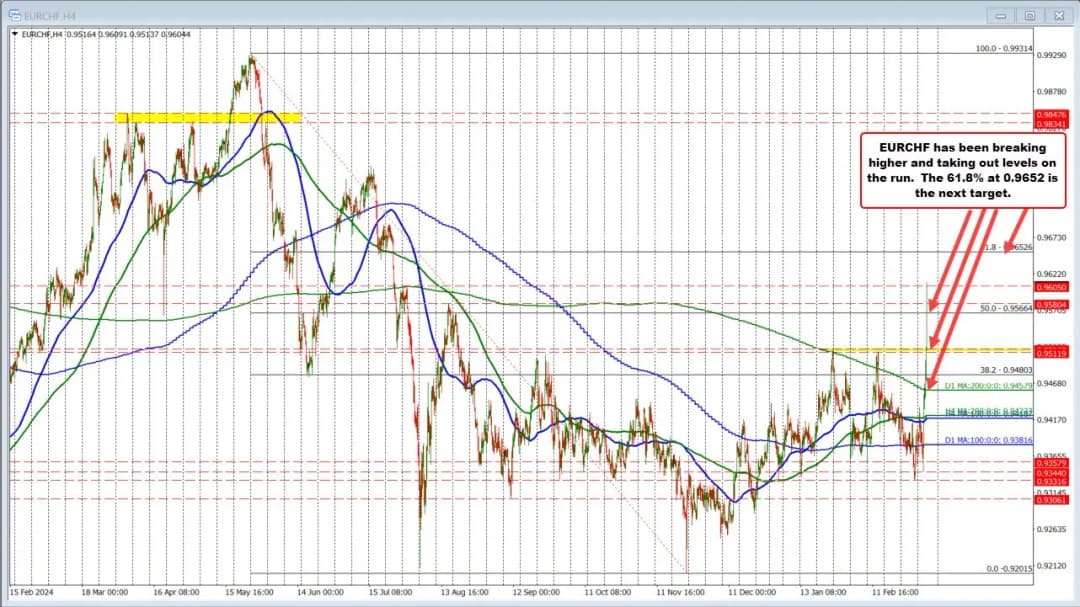 پیشتاز این افزایشها، EURCHF است که ۱.۶۱٪ رشد کرده و این بزرگترین افزایش یکروزه از سال ۲۰۱۵ تاکنون است.