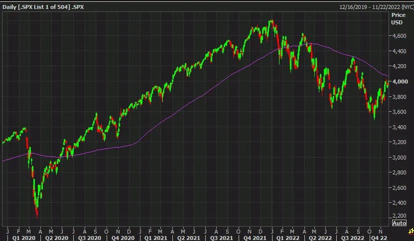 ۱۶ ماه از زمانی که S&P 500 میانگین متحرک ۲۰۰ روزه را لمس کرده بود، گذشته است، اما این شاخص به طور مختصر به زیر این سطح در ۵۷۳۰ سقوط کرد و به ۵۷۲۱ رسید. اکنون توجهها به این معطوف است که آیا این شاخص بالاتر یا پایینتر از این سطح بسته میشود.