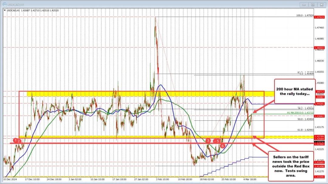USDCAD پس از اظهارات وزیر بازرگانی ایالات متحده مبنی بر تأخیر یا عدم اعمال تعرفهها بر کالاهای کانادایی، به شدت کاهش یافت و فروشندگان کنترل را به دست گرفتند.