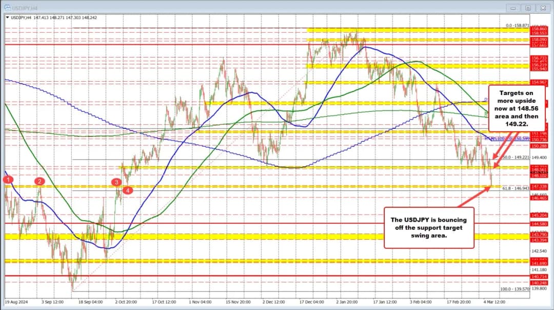 این بهبود پس از اظهارات وزیر بازرگانی ایالات متحده، لوترنیک، که احساسات اقتصادی را تقویت کرد، شتاب بیشتری گرفت و منجر به افزایش بازده اوراق خزانهداری شد. بازده ۱۰ ساله اکنون هفت واحد پایه افزایش یافته و به ۴.۳۳۷٪ رسیده است که از بازگشت USDJPY حمایت میکند.