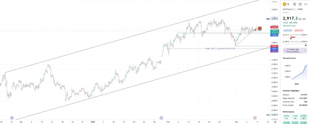 حرکت به سمت ۲۸۳۳.۳ دلار نشاندهنده کاهش عمدهای بیش از ۸۰ واحد است که ممکن است در طول هفته رخ دهد.
