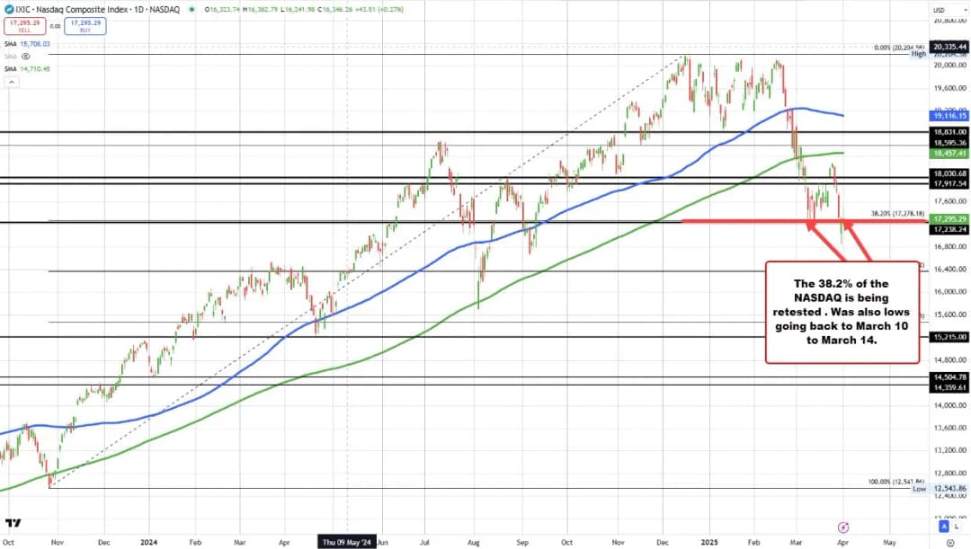 شاخص نزدک در حال آزمایش مجدد سطح اصلاحی ۳۸.۲٪ از حرکت صعودی از کف اکتبر ۲۰۲۴ است که در ۱۷۲۷۸.۱۸ قرار دارد. این سطح در ۱۰ تا ۱۴ مارس به خوبی به عنوان حمایت عمل کرد. باقی ماندن بالای این سطح میتواند امید خریداران برای بازگشت صعودی تا پایان معاملات را حفظ کند.