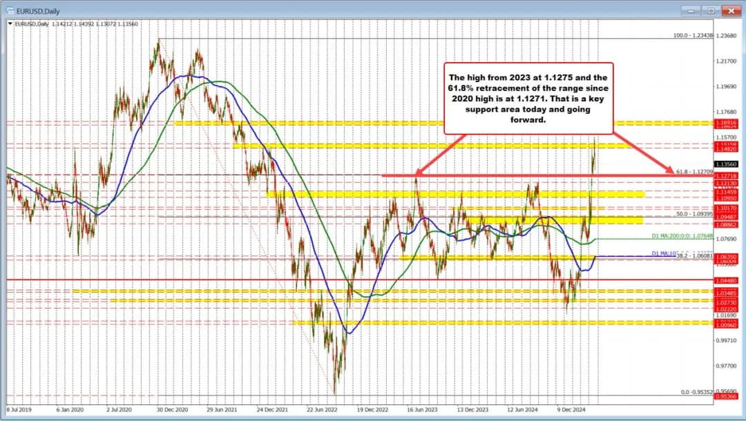 در نمودار روزانه، ناحیه ۱.۱۲۷۱–۱.۱۲۷۵ همچنان تقاطع حمایتی حیاتی محسوب میشود: