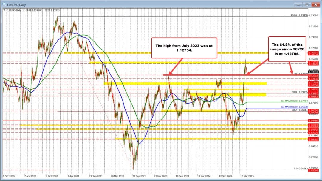 سطح 1.1271 نشاندهنده رشد 61.8٪ فیبوناچی از حرکت صعودی از کف سال 2020 است و عدد 1.1275 متناظر با سقف جولای 2023 میباشد. شکست این محدوده از نظر تکنیکال اهمیت بالایی دارد.