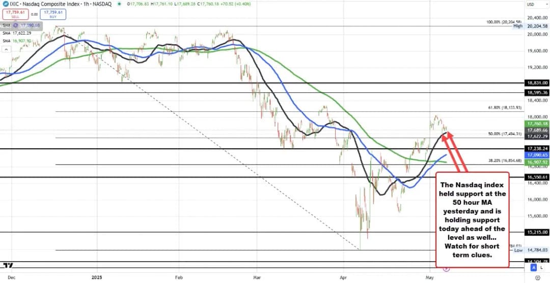 برای شاخص نزدک، میانگین متحرک ۵۰ ساعته روی 17622.12 قرار دارد و کمترین قیمت امروز به 17689.28 رسید.