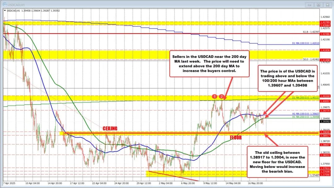 جفت ارز USDCAD همچنان در محدودهٔ تثبیت باریکی معامله میشود و قیمت بین میانگین متحرک ۱۰۰ ساعته (۱.۳۹۶۰۷) و ۲۰۰ ساعته (۱.۳۹۵۰۱) نوسان دارد که نشانهٔ تردید کوتاهمدت است. در معاملات اولیهٔ آمریکای شمالی، جفت ارز بهطور موقت میانگین متحرک ۱۰۰ ساعته را آزمایش کرد اما نتوانست بالاتر بماند و فروشندگان وارد بازار شدند و تمایل کوتاهمدت را به سمت پایین حفظ کردند. دادههای شاخص قیمت مصرفکننده (CPI) کانادا بالاتر از انتظار بود که به حمایت از CAD کمک کرد (کاهش USD/CAD).
