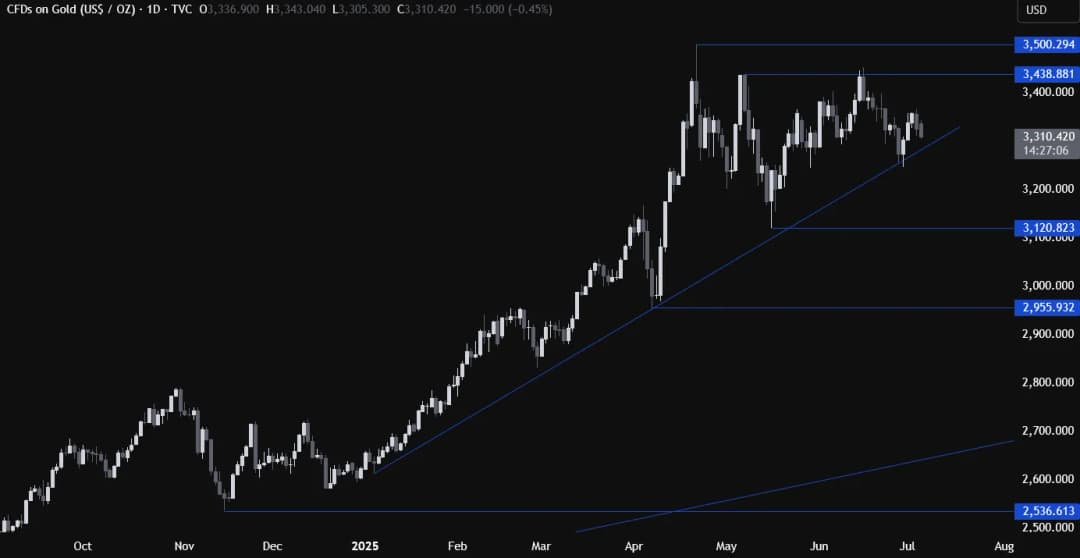 در نمودار روزانه مشاهده میشود که قیمت طلا اکنون در حال اصلاح و بازگشت به سمت خط روند اصلی صعودی است؛ چرا که گزارش مثبت NFP شانس کاهش نرخ بهره سوم تا پایان سال را کاهش داد. به احتمال زیاد خریداران اطراف این خط روند وارد معامله میشوند و با قراردادن حد ضرر زیر آن، روی صعود قیمت و ثبت سقف تاریخی جدید شرطبندی میکنند. در مقابل، فروشندگان به دنبال شکست این خط و نزول قیمت تا سطح ۳۱۲۰ خواهند بود.