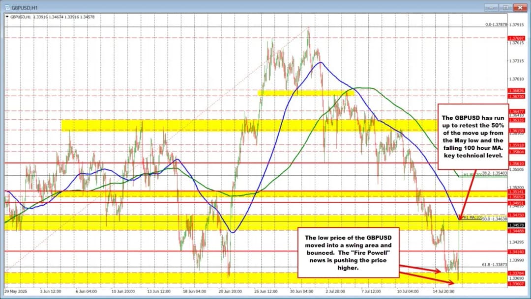 این خبر موجب جهش قیمت شد و نرخ تا نزدیکی میانه ۵۰ درصدی حرکت صعودی از کف ماه مه ۲۰۲۴ تا سقف ۱ جولای و همچنین میانگین متحرک ۱۰۰ ساعته بالا رفت. هر دو این سطوح حوالی ۱.۳۴۶۴ قرار دارند. در صورتی که قیمت بتواند از این نواحی عبور کرده و بالاتر تثبیت شود، چشمانداز افزایش بیشتر تقویت خواهد شد.