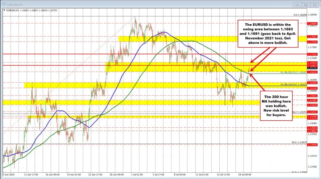 پس از اینکه این سطح مهم در ۲۶ ژوئن مجدد تصاحب شد، جفت هفته گذشته به طور موقت پایینتر برگشت. اکنون خریداران با یک آزمون حیاتی روبرو هستند: آیا میتوانند نه تنها به این ناحیه برسند، بلکه بالای سطح ۱.۱۶۹۱ باقی بمانند و کنترل صعودی را تقویت کنند؟