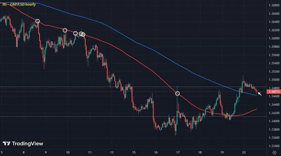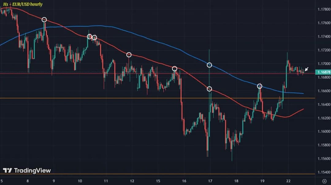 پیش از این، میانگین متحرک ۱۰۰ (خط قرمز) و ۲۰۰ ساعته (خط آبی) مانع رشد نرخها شده بود، اما پس از افت دلار دیروز شاهد حفظ قیمت بالاتر از این سطوح هستیم. بنابراین تمایل کوتاهمدت، اکنون نسبت به دلار متمایل به نزول است.