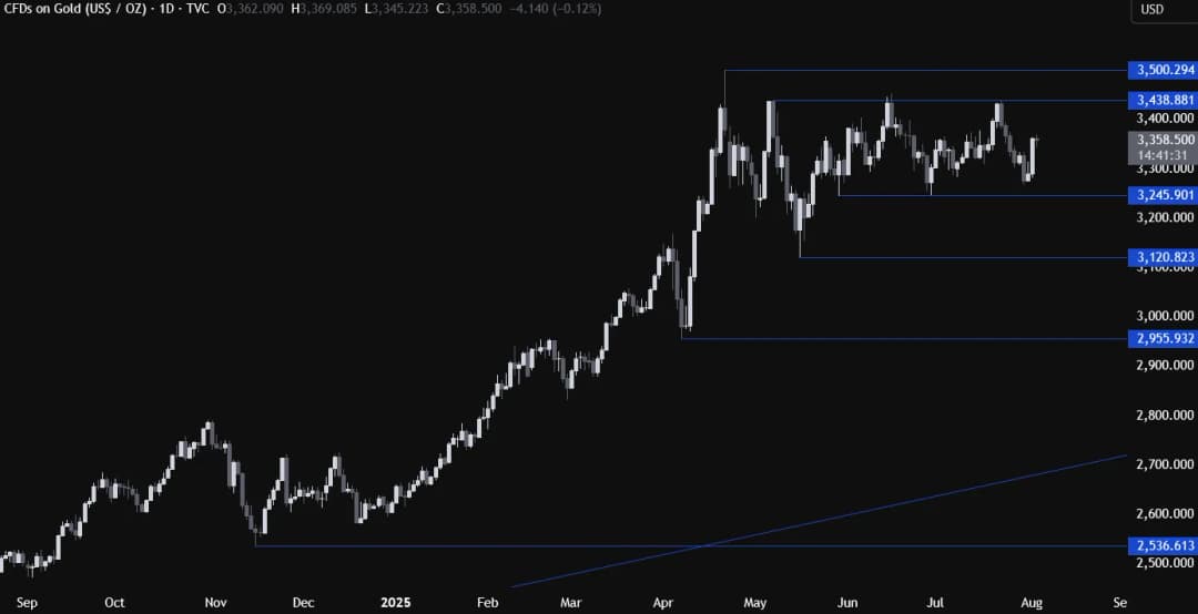 در نمودار روزانه میبینیم که طلا پیش از رسیدن به حمایت ۳۲۴۵ بازگشت داشت، زیرا گزارش NFP نرم شتابی صعودی ایجاد کرد. هدف خریداران اکنون مقاومت کلیدی ۳۴۳۸ است که انتظار میرود فروشندگان در آن نقطه وارد عمل شوند و برای افت قیمت تا حمایت مذکور موقعیتگیری کنند.