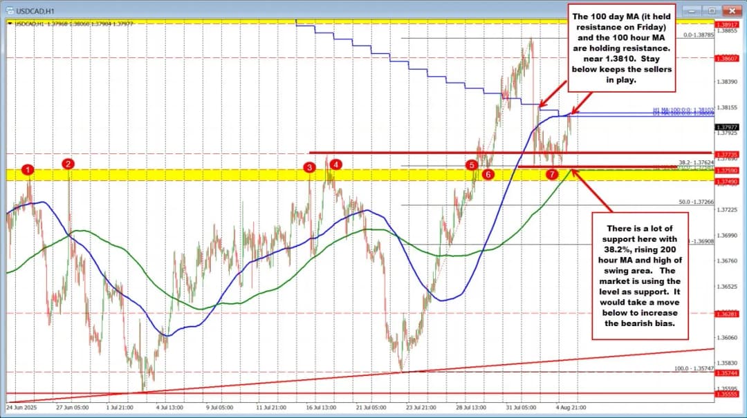 در سمت پایین، خریداران همچنان از منطقه ۱.۳۷۶۲ تا ۱.۳۷۵۹–۱.۳۷۴۹ دفاع میکنند؛ این منطقه نقطه تلاقی قدرتمندی از اصلاح ۳۸.۲ درصد، میانگین متحرک ۲۰۰ ساعته و یک سقف قیمتی مشخص است. در سمت بالا، فروشندگان با قدرت در سطح ۱.۳۸۱۰ ایستادهاند، جایی که میانگین متحرک ۱۰۰ روزه (سقف جمعه) با میانگین متحرک ۱۰۰ ساعته همراستا شده و دیواری از مقاومت ساخته است.