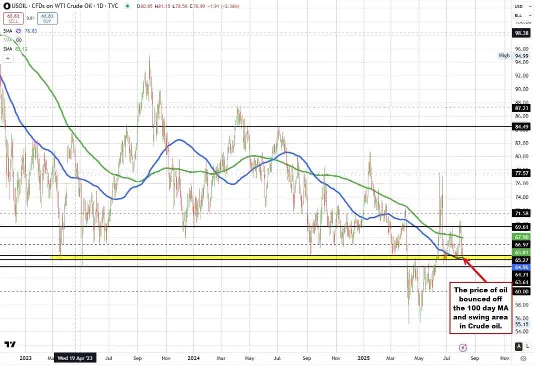 قیمت نفت بر اثر اعلام این خبر رشد کرده است. با این حال، از منظر تکنیکال، کاهش قیمت نفت در هفته گذشته بازار را مجددا به سوی میانگین متحرک ۱۰۰ روزه خود (خط آبی در نمودار فوق) در سطح ۶۴.۹۶ دلار کشاند. پایینترین قیمت امروز یعنی ۶۵.۱۱ دلار کمی بالاتر از آن سطح مهم بود و پس از آن، بازگشت قیمت رخ داد و قیمت نفت را از این سطح دور کرد.