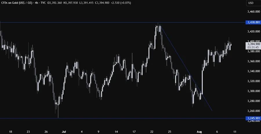 این هفته، مومنتوم صعودی طلا کاهش یافته و توجه معاملهگران به سمت دادههای تورم مصرفکننده آمریکا (CPI) که قرار است هفته آینده منتشر شود، جلب شده است. گزارش نرم اشتغال غیرکشاورزی (NFP) باعث شد انتظارات نرخ بهره با سرعت به سمت سیاستهای تسهیلیتر تغییر کند و همین امر رالی قیمتی طلا را رقم زد، چراکه بازده واقعی اوراق قرضه کاهش پیدا کرد.