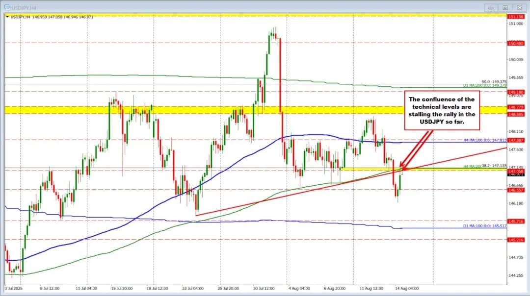 دلار/ین تا زمان انتشار دادهها تحت فشار بود و پس از شکست زیر همگرایی سطوح تکنیکال در بازه 147.05 تا 147.135 (میانگین متحرک ۲۰۰ کندلی در نمودار ۴ ساعته، خط روند و ۳۸.۲٪ بازه معاملاتی سال 2025)، پایینتر رفت. سقف قیمت تا 147.095 بالا رفت، اما تاکنون دست بالا با فروشندگان است.