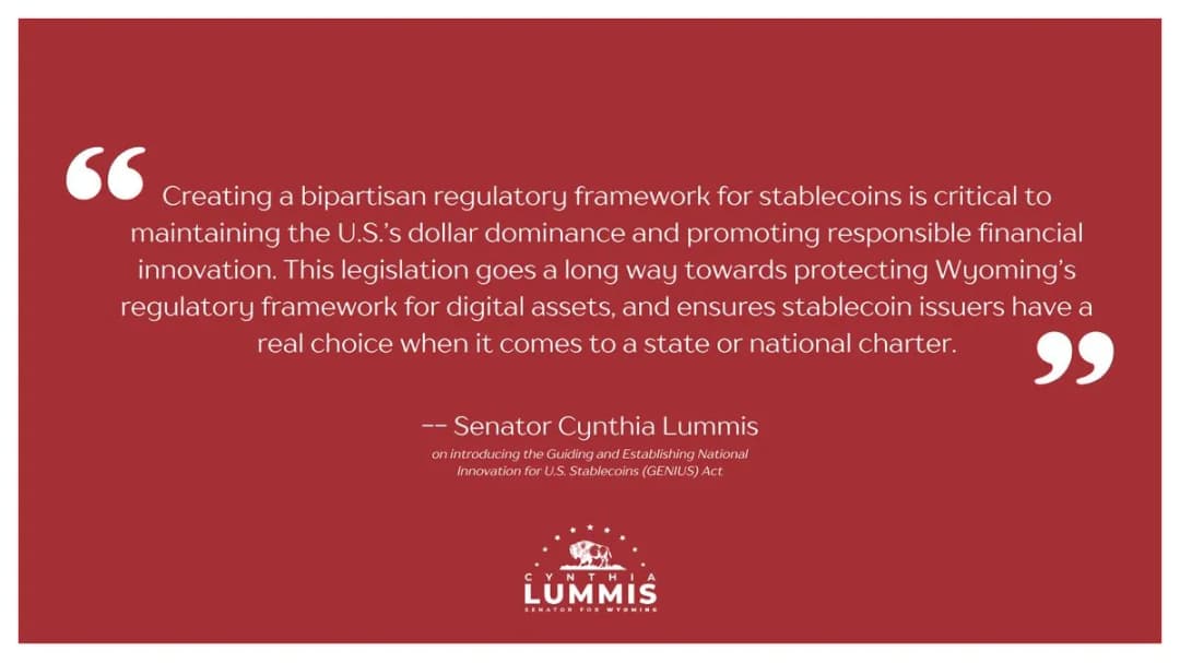 دادههای CoinGecko نشان میدهد که تتر (USDT) و USD Coin (USDC) متعلق به شرکت Circle تنها دو استیبل کوینی هستند که در حال حاضر ارزش بازار بالای ۱۰ میلیارد دلار دارند. صادرکنندگان استیبل کوین همچنین باید هر ماه گزارشهای ذخایر حسابرسی شده ارائه دهند و ارائه اطلاعات نادرست ممکن است منجر به مجازاتهای کیفری شود. النور ترت، خبرنگار FOX Business، در X گفت که کارکنان سنا «انتظار دارند این لایحه به سرعت از کمیتههای کنگره عبور کند.»