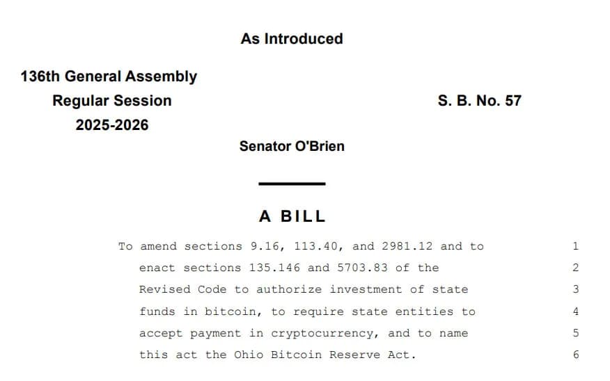 اوهایو به دنبال ایجاد صندوق ذخیره بیت کوین؛ لایحه جدید در راه سنای ایالتی