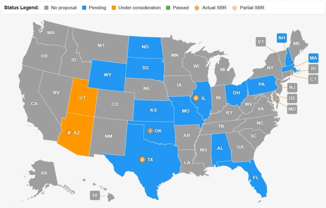 در سپتامبر، سناتور اوهایو، نیراج آنتانی، لایحهای را معرفی کرد که به ایالت اجازه میدهد کریپتو را برای پرداخت مالیاتها و هزینهها بپذیرد. تعداد ایالتهای آمریکا که لوایح سرمایهگذاری در کریپتو را پیشنهاد میکنند در حال افزایش است. در اواخر ژانویه، یک کمیته مجلس نمایندگان یوتا لایحهای را تصویب کرد که به ایالت اجازه میدهد بخشی از وجوه عمومی را در کریپتو سرمایهگذاری کند. اوهایو یکی از دوازده ایالت آمریکاست که لوایحی را برای اجازه به خزانهداری محلی خود برای خرید داراییهای کریپتو پیشنهاد کردهاند و دو ایالت دیگر - آریزونا و یوتا - لوایحی در دست بررسی دارند.