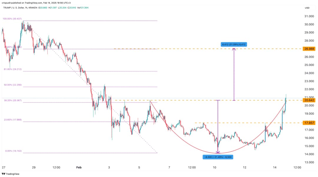 کاهش به زیر حمایت ۱۷.۸۵ دلاری، بالاترین نوسان در ۹ فوریه، پیشبینی صعودی قیمت رسمی TRUMP را باطل خواهد کرد.