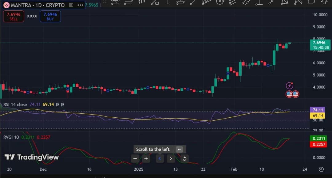 این فعالیت خرید در بازار با افزایش شاخص قدرت نسبی (RSI) OM نیز مشهود است. با وجود اینکه RSI به ۷۳ رسیده است، هنوز به شرایط اشباع خرید نرسیده و منتر قبل از اصلاح قیمت فضای بیشتری برای رشد دارد.
