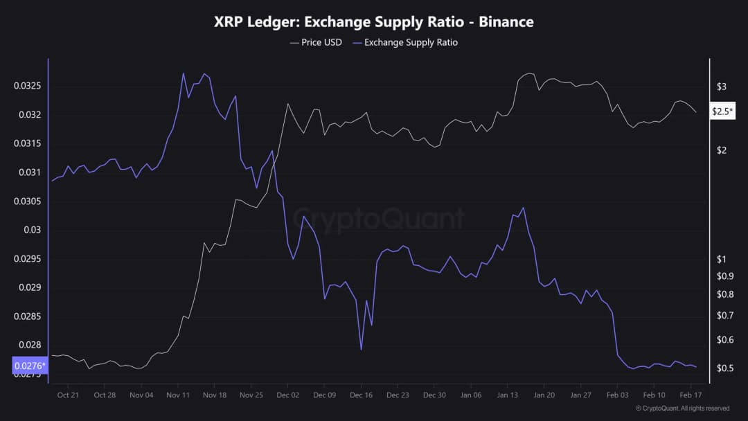 در همان دوره، نسبت عرضه در صرافیها از بیش از ۰.۰۳۲ به ۰.۰۲۸ کاهش یافته است. این معیار عرضه در صرافیها و بهطور کلی فشار فروش را اندازهگیری میکند. روند نزولی نشان میدهد که فشار فروش کلی XRP کم است و شاید توضیح دهد که چگونه این آلتکوین سود خود پس از انتخابات را حفظ کرده است.