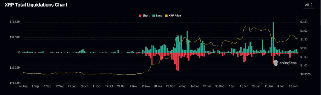 احساسات صعودی غالب در بازار میتواند XRP را به ۳.۳۷ دلار برساند - اوج قیمتی که آخرین بار در ۱۶ ژانویه معامله شده بود. این سطح مهمترین سطح برای XRP در نمودارها است، با ۱۵.۸۶ میلیون دلار سفارشات فروش آماده برای فعال شدن - به این معنی که حرکت به این سطح میتواند باعث کاهش قیمت XRP شود. با این حال، اگر احساسات صعودی قوی باقی بماند، احتمالاً این سفارشات فروش از سوی معاملهگران مشتقات بهطور اجباری بسته خواهند شد و به XRP اجازه میدهند تا به قیمتهای بالاتر معامله شود.