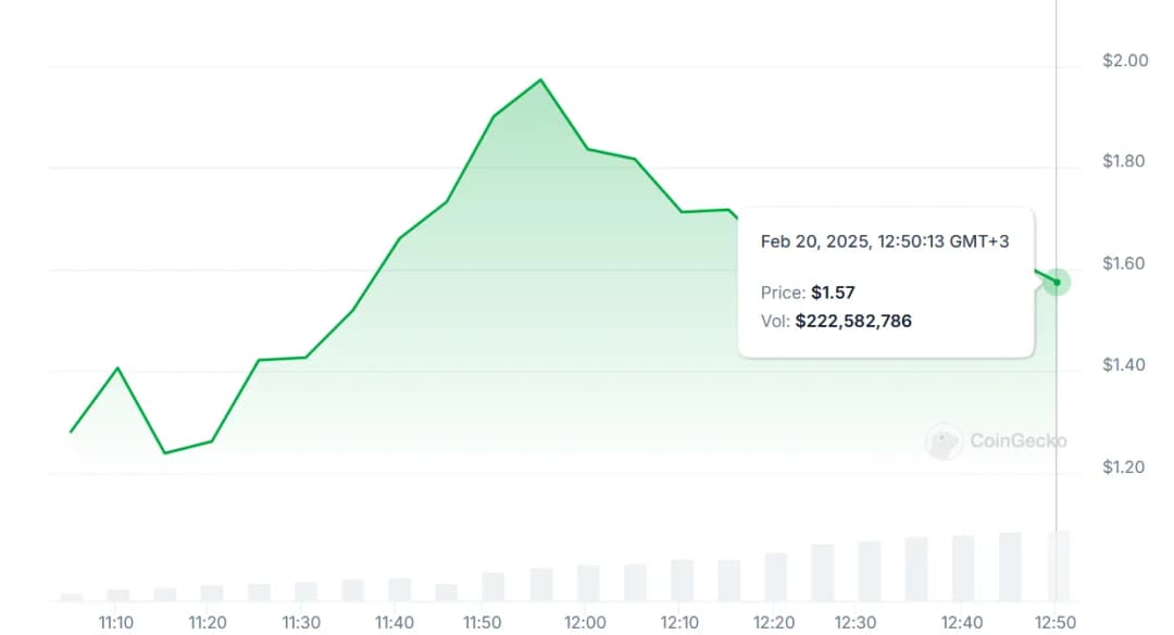 ارزش Pi Coin امروز $1.57 با بالاترین قیمت روزانه $1.97 است. در صرافی OKX، Pi Coin به بالاترین قیمت تاریخ خود یعنی $2.2 رسید و حجم معاملات در کمتر از دو ساعت به $101M رسید.