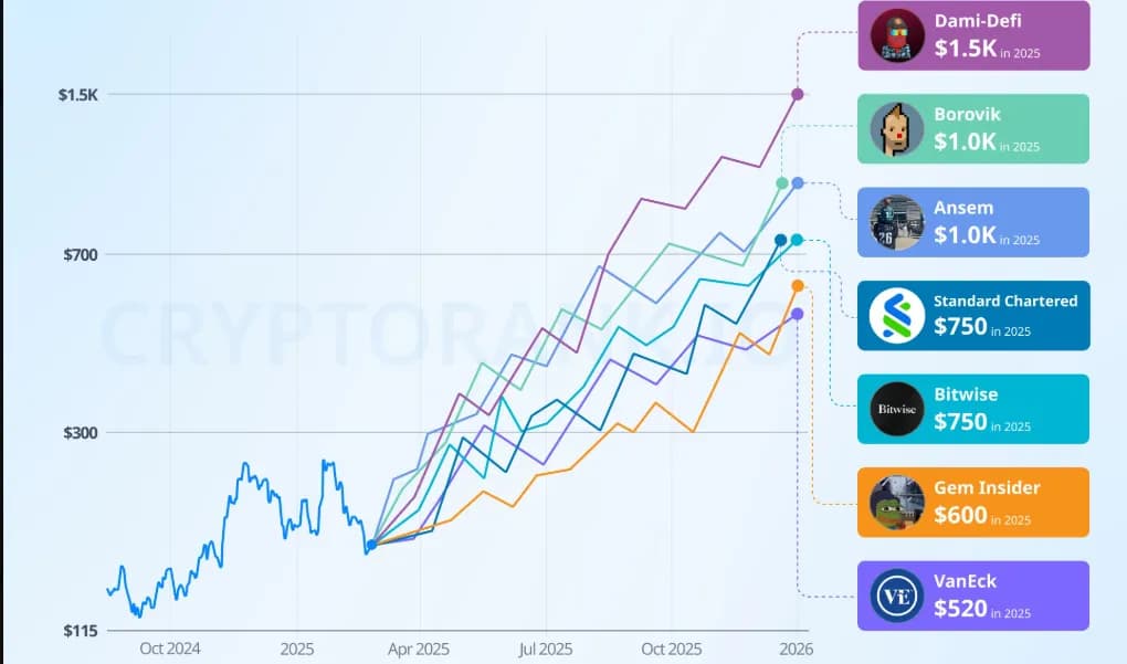 در همین حال، Bitwise و Standard Chartered پیشبینی میکنند که قیمت سولانا میتواند به ۷۵۰ دلار برسد، در حالی که تحلیلگرانی مانند Ansem و Borovik انتظار افزایش قیمت تا ۱۰۰۰ دلار را دارند.