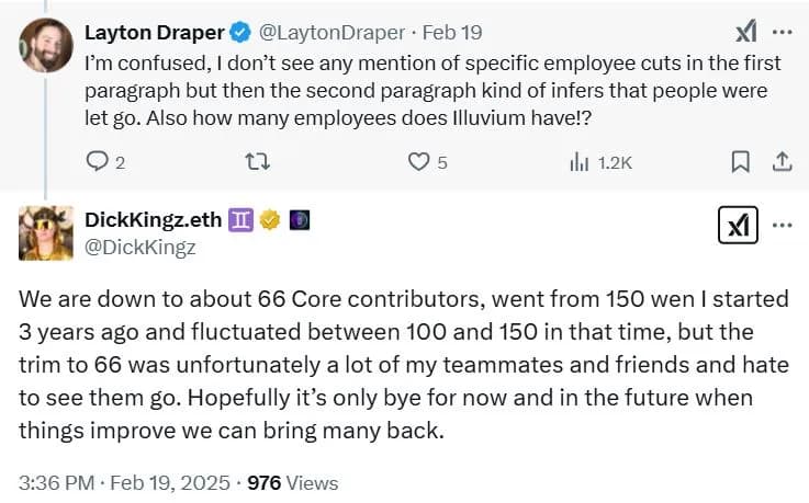 شرکت بازیسازی مبتنی بر بلاکچین Illuvium Labs در دو هفته گذشته حدود ۴۰٪ از نیروی کار خود را کاهش داده است تا زمانبندی توسعه بازیهای خود را تسریع کند. کیران واریک، یکی از بنیانگذاران و مدیرعامل Illuvium، در گفتگو با Cointelegraph گفت که این شرکت با شروع بازار نزولی در دو سال گذشته در حال کوچکسازی بوده و تعداد کارکنان خود را از اوج ۲۰۰ نفر کاهش داده است. آخرین کاهش، تعداد کارکنان را از ۱۱۰ به ۶۵ نفر رسانده است.