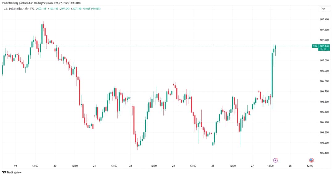این تعرفهها که قرار است از ۴ مارس آغاز شوند، "طبق برنامه اجرا خواهند شد"، ترامپ در یک پست در Truth Social نوشت. در نتیجه، هم شاخص S&P 500 و هم شاخص نزدک کامپوزیت با کاهش باز شدند، در حالی که شاخص دلار آمریکا (DXY) ۰.۶٪ افزایش یافت و بیش از یک هفته کاهش را جبران کرد.