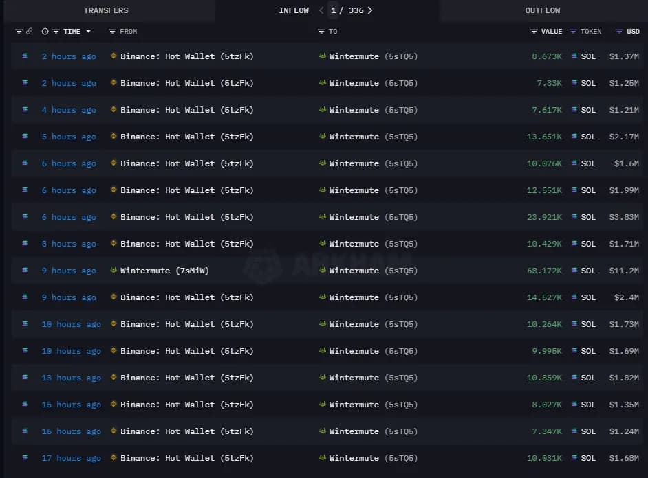 بازارساز کریپتو Wintermute بیش از ۳۸.۲ میلیون دلار سولانا را در ۲۴ ساعت منتهی به ۹:۰۲ صبح به وقت هماهنگ جهانی در ۲۴ فوریه از بایننس خارج کرد، طبق دادههای Arkham Intelligence.