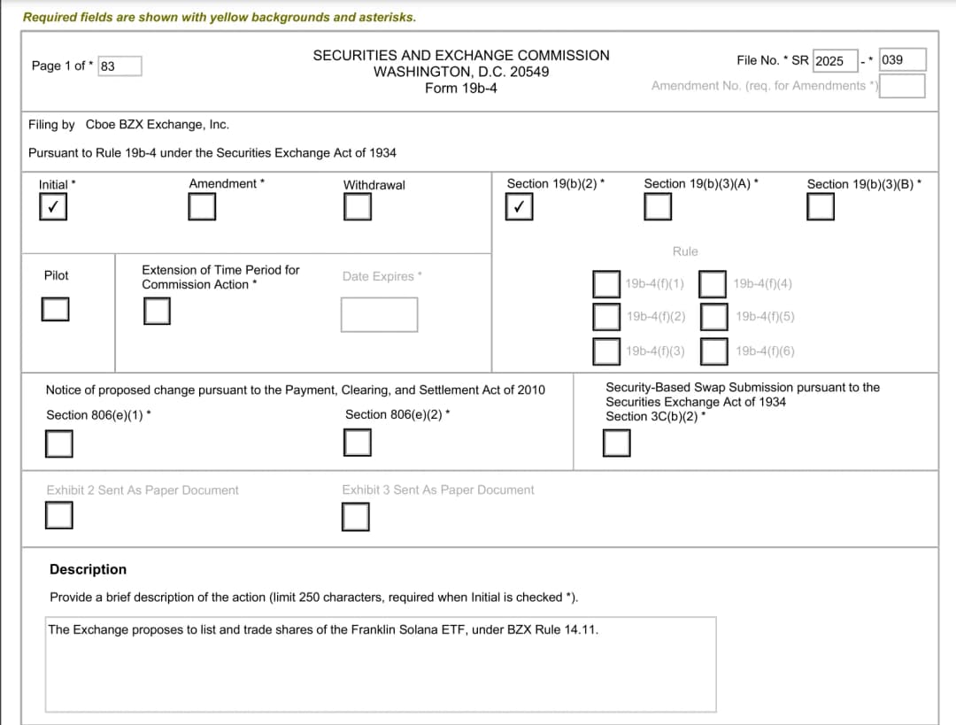 درخواست Cboe BZX برای راهاندازی ETF سولانا به نمایندگی از فرانکلین تمپلتون