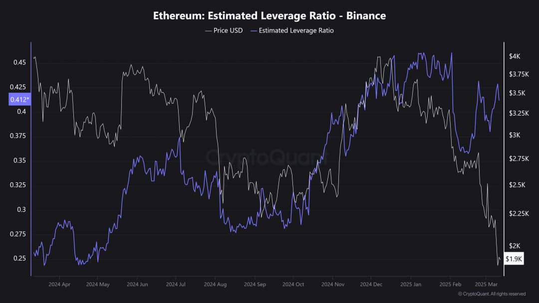 اتریوم (ETH) نمونهای از این روند است. با وجود از دست دادن حمایت ۲۰۰۰ دلاری برای اولین بار از سال ۲۰۲۳ و افزایش ذخایر صرافیها، نسبت اهرم تخمینی (ELR) آن به بالاترین سطح ماهانه خود رسیده است. این نشاندهنده افزایش ریسک در بازارهای مشتقه است.