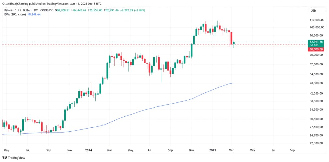 قیمت بیت کوین پس از کاهشهای مداوم از پایان ژانویه، ۳٪ افزایش یافته است. این ارز دیجیتال برتر توانست پس از کاهش کوتاه مدت به زیر ۸۰ هزار دلار در ۱۱ مارس، دوباره به بالای این سطح بازگردد.