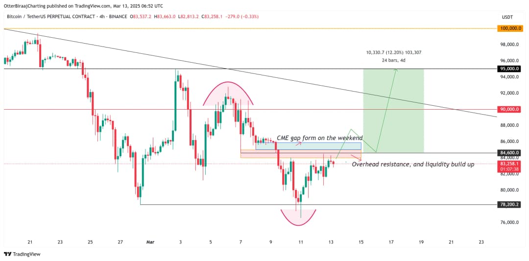 با کمبود نقدینگی در جهت نزولی زیر ۷۷ هزار دلار، احتمال حرکت بیت کوین به سمت نقدینگی صعودی افزایش یافت. علاوه بر این، فعالسازی تسویهها بالای ۸۵ هزار دلار میتواند باعث افزایش بیشتر شتاب صعودی شود و به بیت کوین اجازه دهد یک اوج بالاتر تشکیل دهد و این سطح را به حمایت جدید تبدیل کند. یک شکاف در معاملات آتی بیت کوین در CME از آخر هفته گذشته نیز بین ۸۵ هزار تا ۸۶ هزار دلار پر نشده باقی مانده بود. با سابقه ۱۰۰٪ پر شدن شش شکاف در چهار ماه گذشته، این وضعیت شانس تبدیل مقاومت بالای ۸۵ هزار دلار به حمایت را افزایش داد.