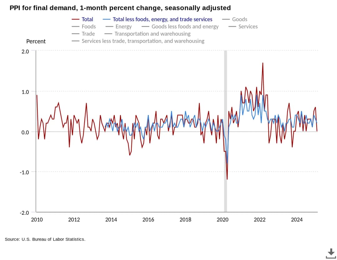 شاخص قیمت تولیدکننده (PPI) برای ماه فوریه کمتر از انتظارات میانگین بود و نتایج شاخص قیمت مصرفکننده (CPI) روز قبل را تکرار کرد.
