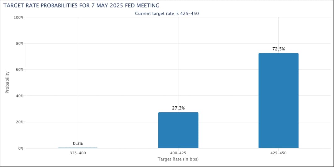 احتمال کاهش نرخ در جلسه ماه مه فدرال رزرو ۲۸٪ بود.