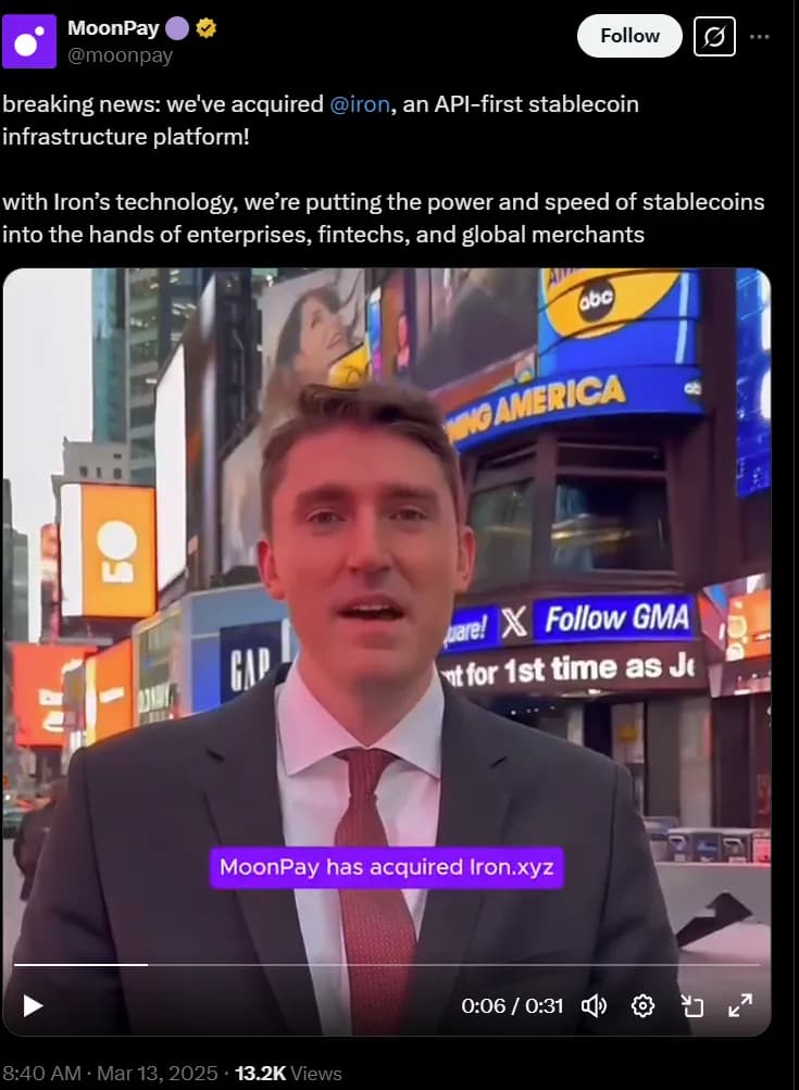 MoonPay زیرساخت استیبل کوین Iron را خریداری کرد