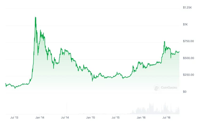 از آن زمان، بیت کوین بیش از ۱۸ درصد سقوط کرده است و ارزش کل بازار کریپتو تقریباً تمام سودهای ناشی از پیروزی ترامپ را از دست داده و ۲۵ درصد کاهش یافته است. در فروش پس از تحلیف ترامپ، سرمایهگذاران حدود ۴.۶ میلیارد دلار از محصولات قابل معامله در بورس کریپتو خارج کردند، در حالی که بازار نقدی شاهد خروجهای بیشتری بود و حداقل ۱ میلیارد دلار در یک روز (۳ مارس) نقدینگی از دست رفت. اما این فروش اخیر بدترین فروش ثبت شده نیست. «اگر بخواهیم درباره بدترین چرخه بیت کوین صحبت کنیم، سالهای ۲۰۱۴-۲۰۱۵ احتمالاً بیرحمترین بودند»، بوردون از Trezor به Cointelegraph گفت. با اشاره به فروپاشی صرافی کریپتو Mt. Gox که در سال ۲۰۲۴ در یک نقض امنیتی ۸۵۰ هزار بیت کوین را از دست داد، این تحلیلگر این رویداد را بدترین فروش بیت کوین در تاریخ دانست.