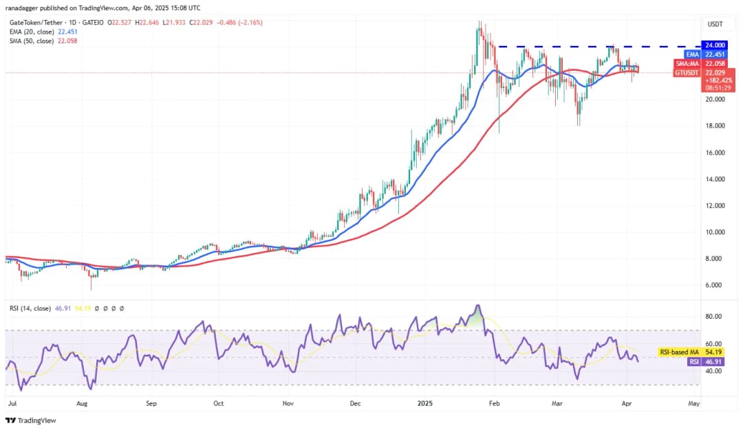 GateToken (GT) در چند روز گذشته در سطح میانگین متحرک ساده 50 (22.05 دلار) حمایت خوبی به دست آورده است؛ سطحی که برای نظارت اهمیت زیادی دارد.