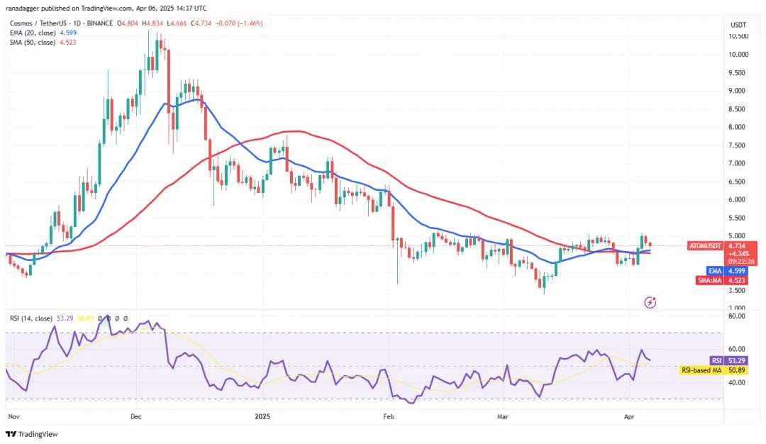Cosmos (ATOM) در تلاش است کف جدیدی بسازد اما در برابر فروش در سطح 5.15 دلار مقاومت میکند. نکته مثبت جزئی این است که گاوها اجازه ندادهاند قیمت زیر میانگینهای متحرک سقوط کند.