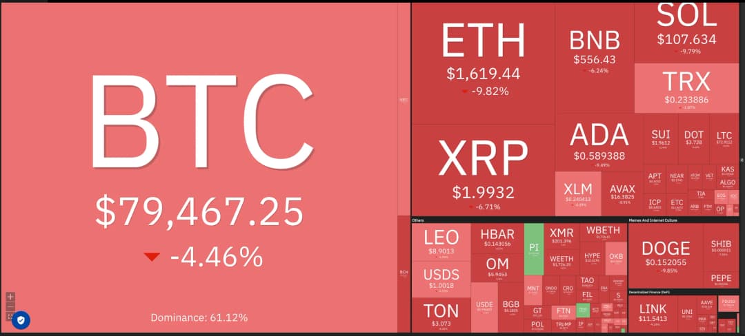 بیت کوین زیر ۸۰ هزار دلار فروکش کرد — آیا PI، OKB، GT و ATOM عملکرد بهتری نسبت به BTC و آلتکوینها خواهند داشت؟