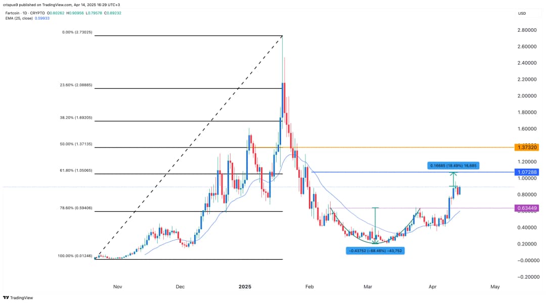 قیمت فارتکوین پس از رسیدن به کف ۰.۱۹ دلار در ماه مارس به صعود قابل توجهی دست یافته است. این ارز دیجیتال بیش از ۳۰۰٪ رشد کرده و تبدیل به یکی از بهترین عملکردها در میان سکههای اصلی شده و ارزش بازار آن نزدیک به ۱ میلیارد دلار رسیده است.
