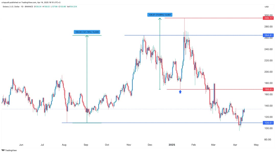 این صعود قیمت سولانا، سرمایهگذاران حوزه رمزارز را به وجد آورده و برخی انتظار دارند که در نهایت به ۲۰۰ دلار برسد؛ حرکتی که نشاندهنده افزایش ۵۰٪ از سطح فعلی است. تاریخچه نوسانات این سکه امکان وقوع چنین جهشی را میسر میسازد.