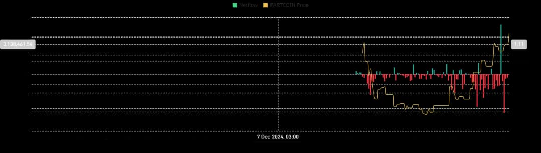 علاوه بر این، تقاضا از عرضه پیشی گرفته است. جریان خالص اسپات (Spot Netflow) Fartcoin به مدت چهار روز متوالی منفی باقی مانده که نشانه انباشت است.