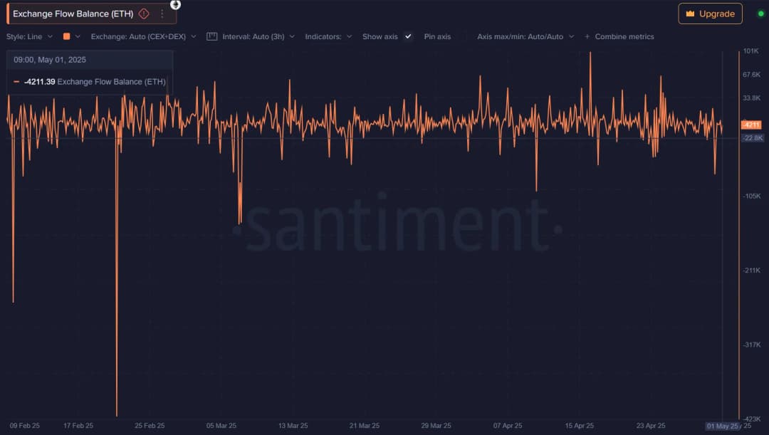 تحلیل تسویه موقعیتهای شورت اخیر نشان میدهد مجموعاً ۲.۱۵ میلیون دلار تسویه رخ داده که ۶۴۳.۵۸ هزار دلار آن مربوط به بایننس است. اگر ETH بالای ۱۹۰۰ دلار شکسته شود، تسویههای شورت ممکن است تسریع شود و با ایجاد شورت اسکوییز، به ادامه روند صعودی کمک کند. اتریوم همچنین شاهد خروج قابل توجهی از صرافیها بوده است؛ تا زمان نگارش ۴۲۱۱ ETH از صرافیها خارج شده است. این روند نشاندهنده افزایش اعتماد دارندگان است که ترجیح میدهند ETH را خارج از پلتفرمهای معاملاتی نگه دارند. با کاهش توکنهای قابل فروش، شرایط برای ادامه روند صعودی فراهمتر شده است.