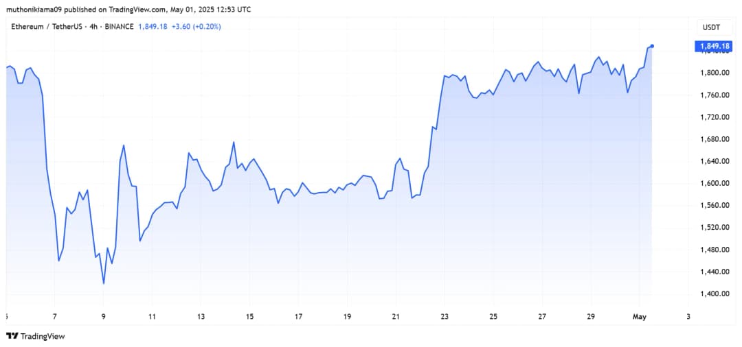 قیمت اتریوم (ETH) امروز، ۱ می، پس از عبور از مرز ۱۸۵۰ دلار برای اولینبار در بیش از سه هفته، وارد روند صعودی شده است. این رشد در حالی رخ داده که بحثهایی مبنی بر رسیدن ETH به یک کف محلی مطرح است و شاخصهای مهم درونزنجیرهای از این فرضیه حمایت میکنند.