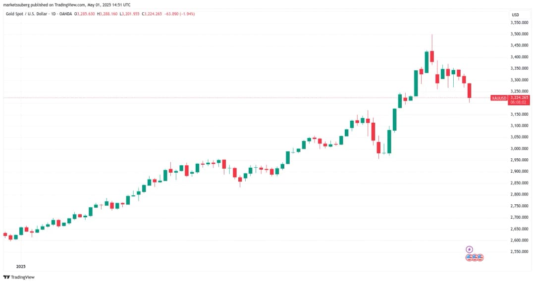 جفت XAU/USD بیش از ۸٪ نسبت به رکورد ماه آوریل کاهش یافت و نفت نیز افت را تجربه کرد.